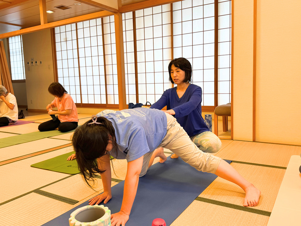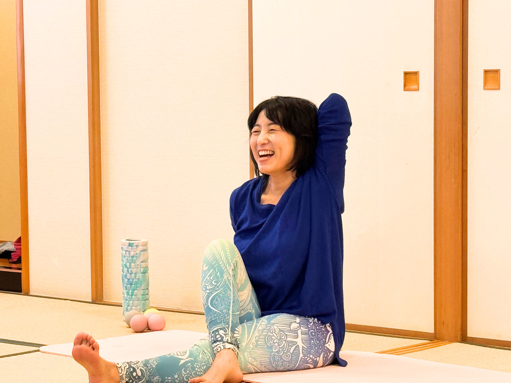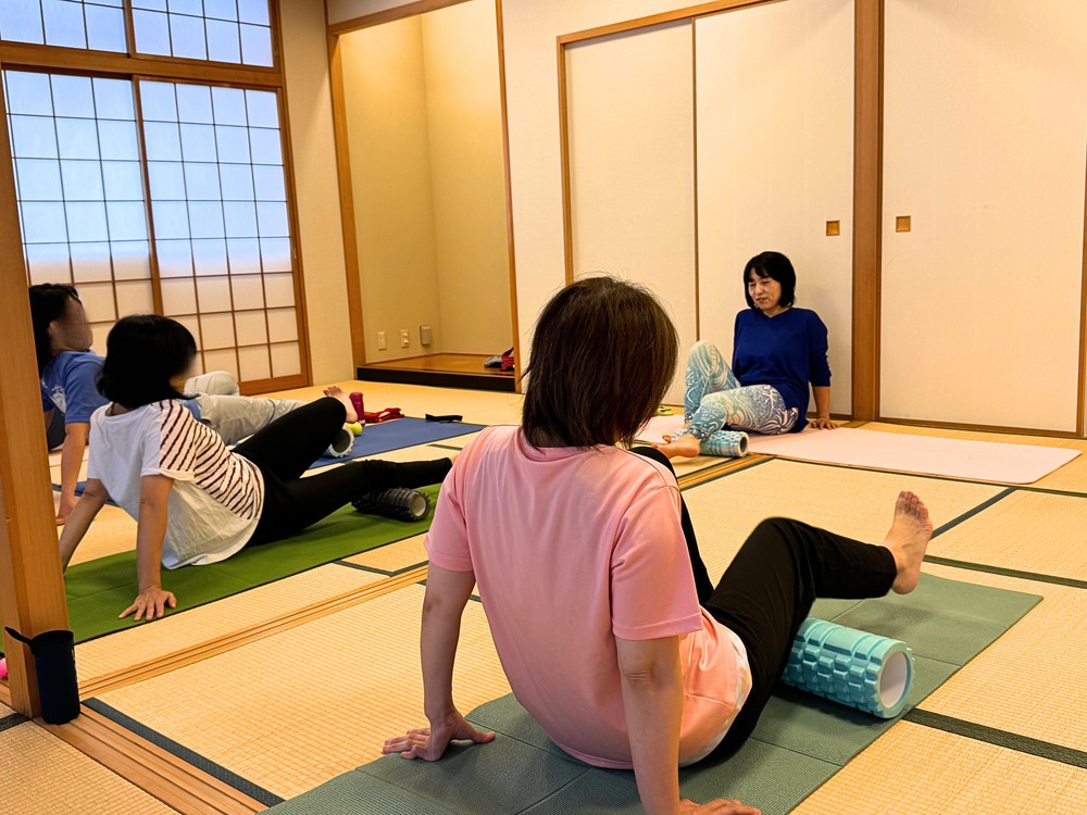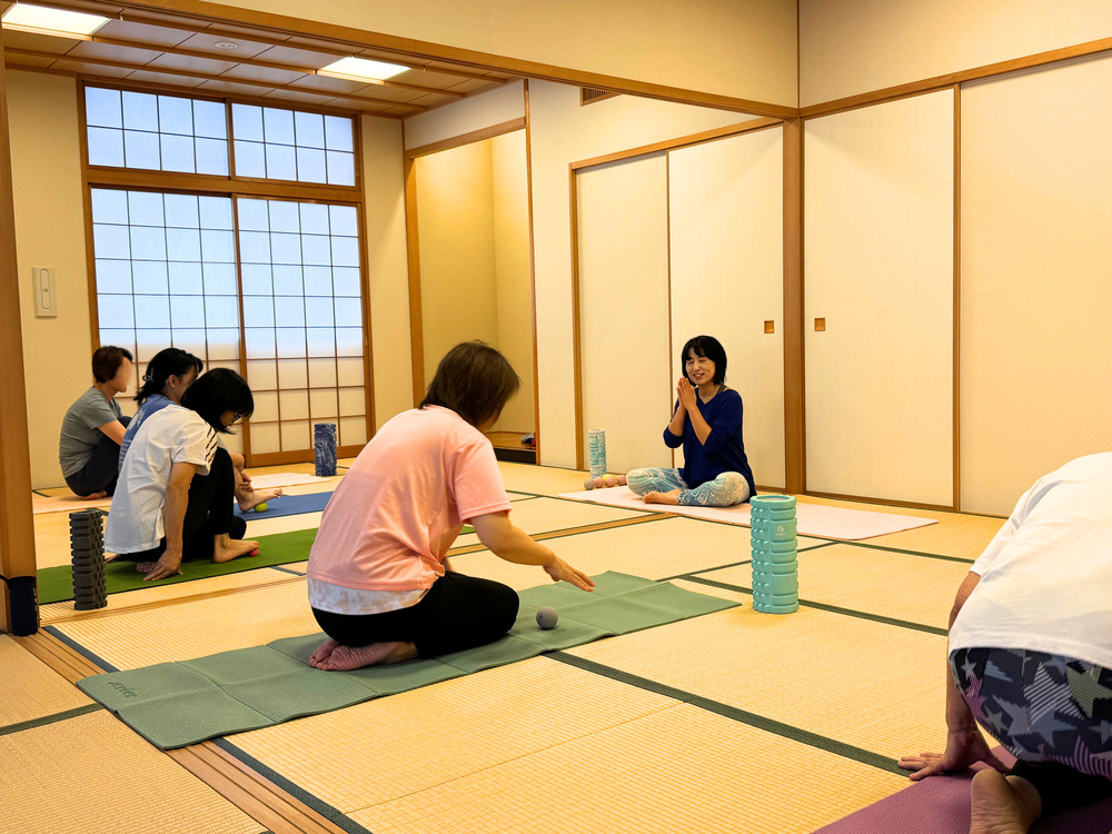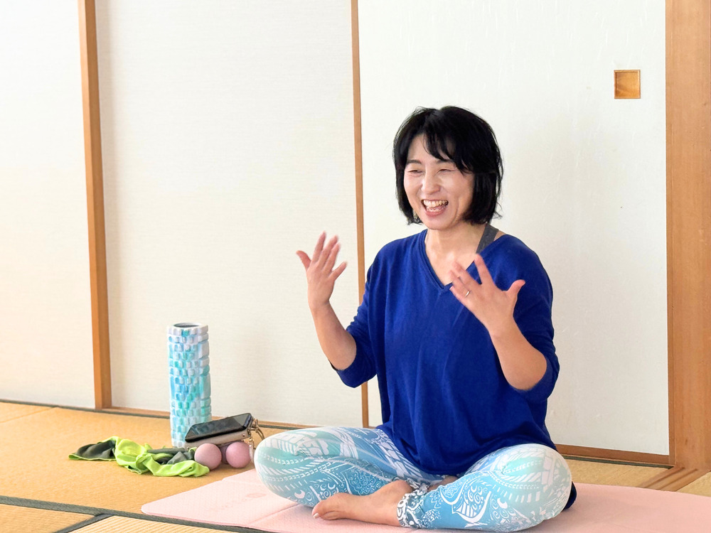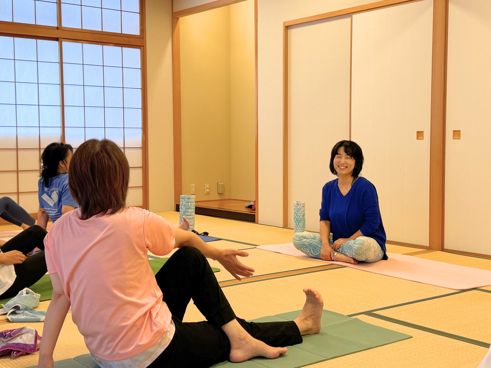 長くレッスンに参加されているベテラン世代の方は、「先生のヨガは無理なく続けられるストレッチ要素が多いから、私でもできるんです。あのマッサージが最高で、いつも楽しみ」と笑顔で話されていました。