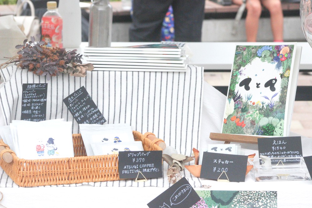 こちらはなんと、ATSUGI COFFEE FESTIVALのメインビジュアルのイラストを担当したhey(ヘイ)さんのブースです!