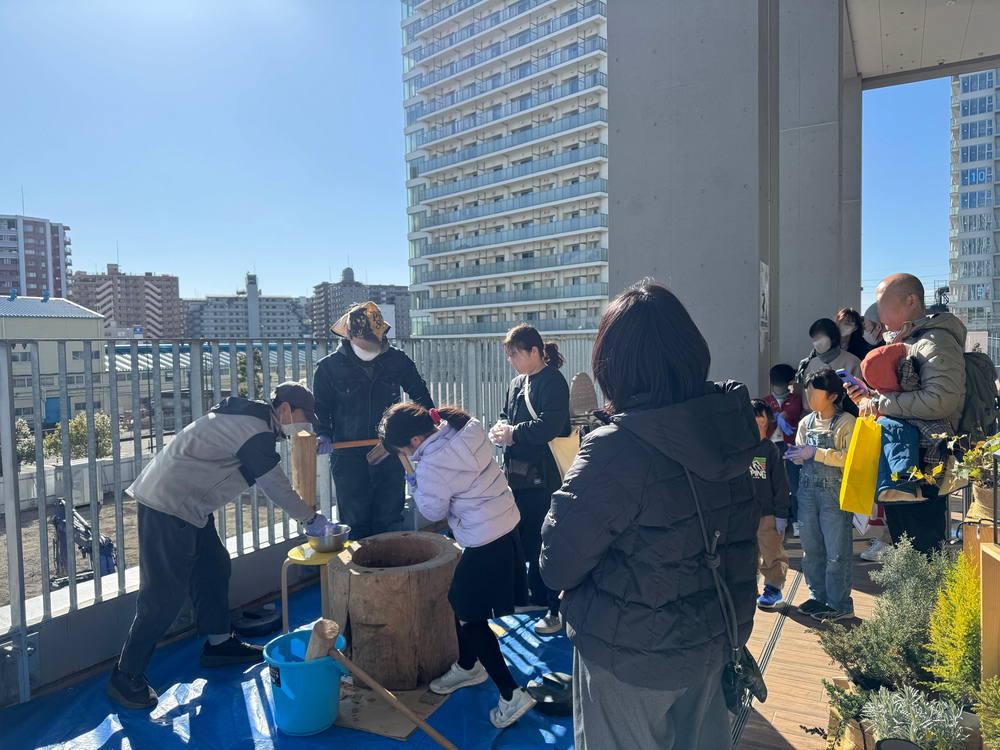 イベント会場内では、500円以上の買い物でつきたてのお餅やお汁粉が楽しめ、午後1時からは温かい甘酒も振る舞われました。