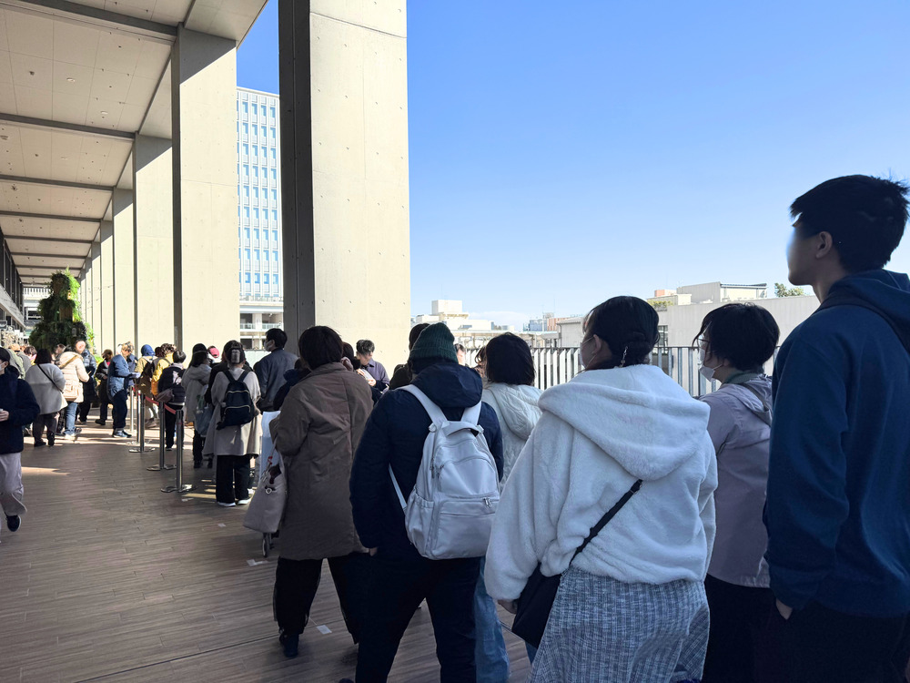 お汁粉を求めて会場には自然と長い列ができており、多くの人の期待を集めていました。