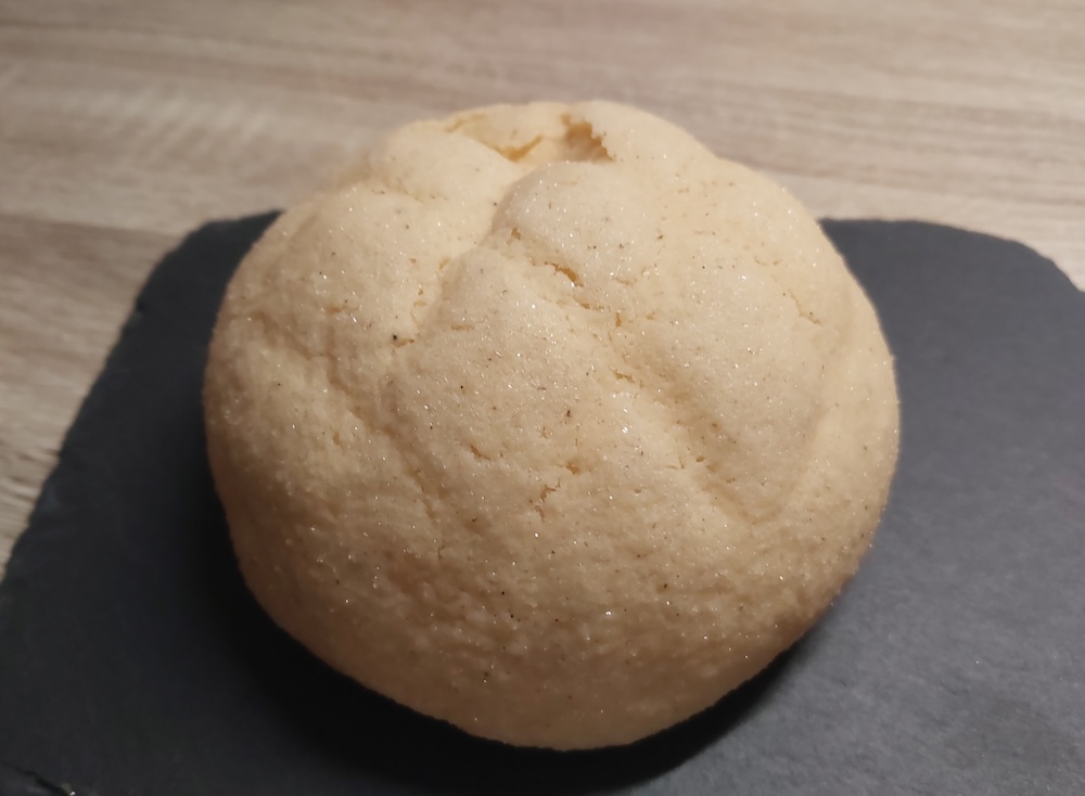 メロンパンは、外側のサクサクとしたクッキー生地と、内側のふわふわ・しっとりとしたパン生地のコントラストが印象的。