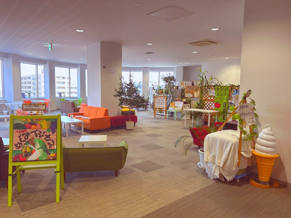 広々としたくつろぎの空間「めぐみベジカフェ」