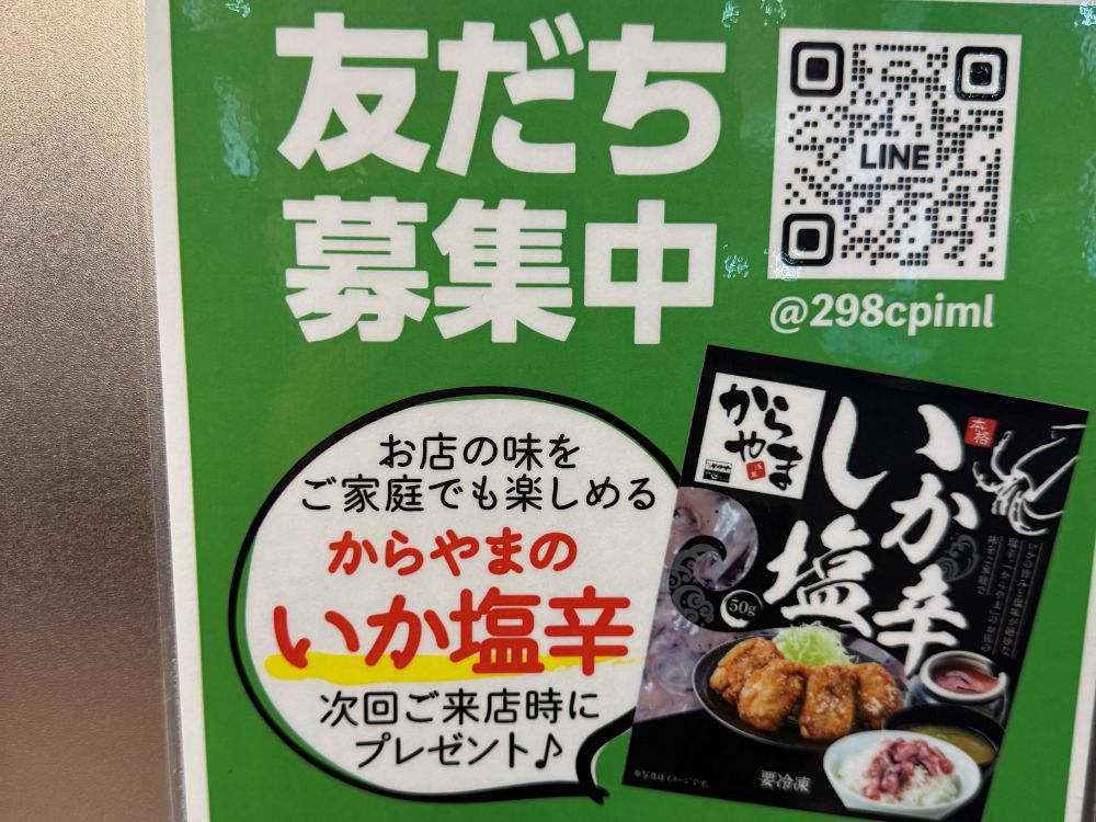 海老名店限定の特典が出ることもあり、訪れたこの日はなんと「塩辛」をいただけました!