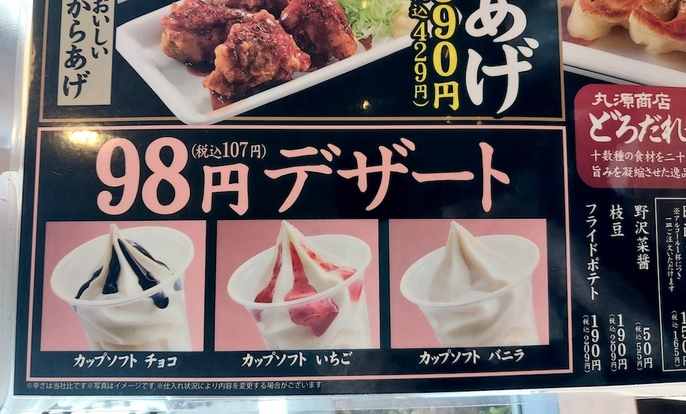 ラーメンのあとに、たくさんは食べられないけど少しだけ甘いものが食べたいという人にぴったりの、「カップソフト(バニラ・いちご・チョコ)(税込107円)」もあります。