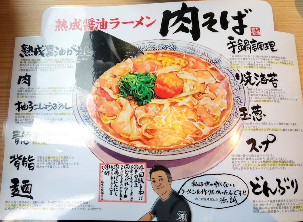 丸源ラーメンといえば、看板メニューの「熟成醤油ラーメン 肉そば」が有名です。