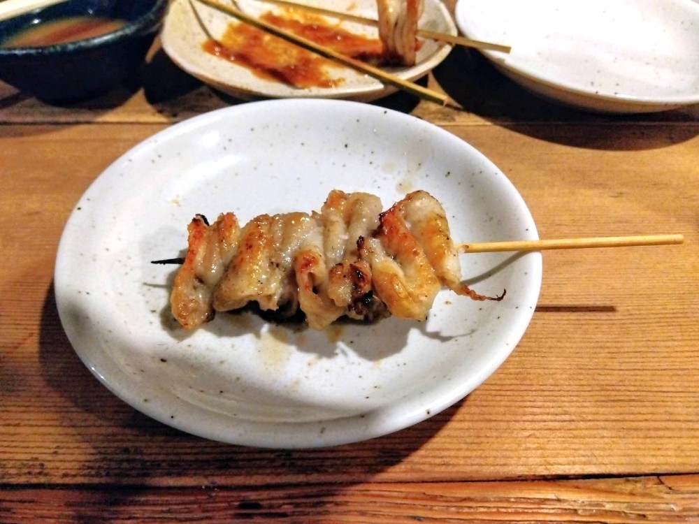 純平の焼き鳥は山梨県の甲州健味鶏を使用。鶏臭さが少なくさっぱりした風味で、備長炭で焼くことで一層ジューシーな味わいとなります。今回注文した鶏皮は143円とお手頃価格です。