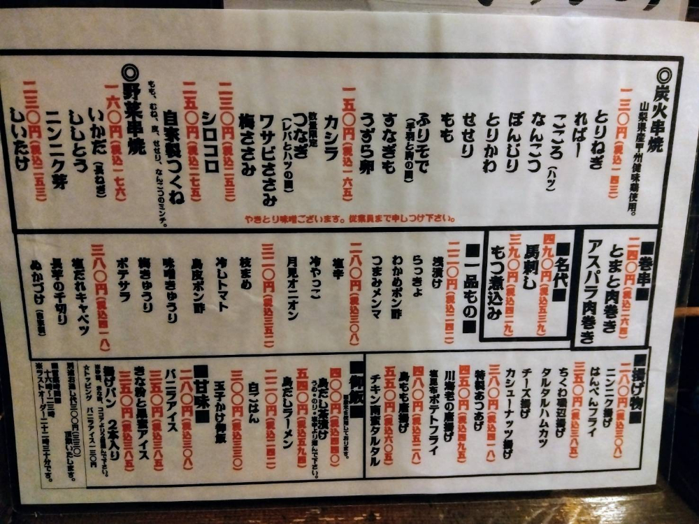 焼き鳥のほかにもシロコロや馬刺しなど、人気メニューは盛りだくさん。独特の雰囲気や懐かしさに浸りながら味わえる料理は格別ですよ。
