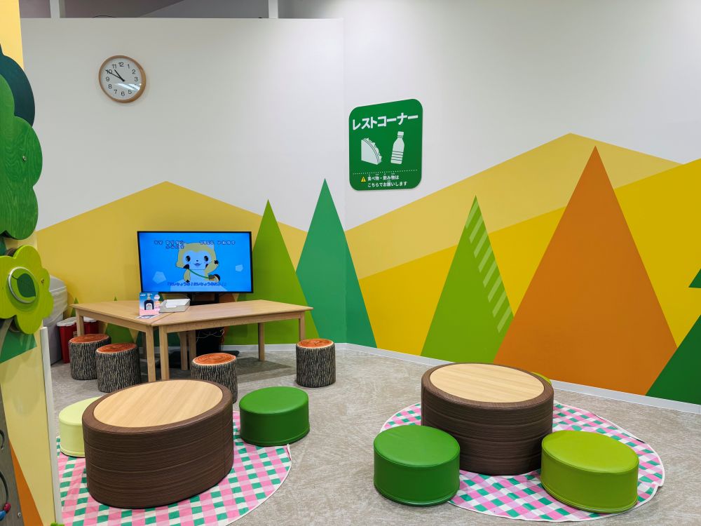 また、遊びに夢中になって少し疲れてきたときにうれしいのが、ゆったりと休憩できる「レストコーナー」です。