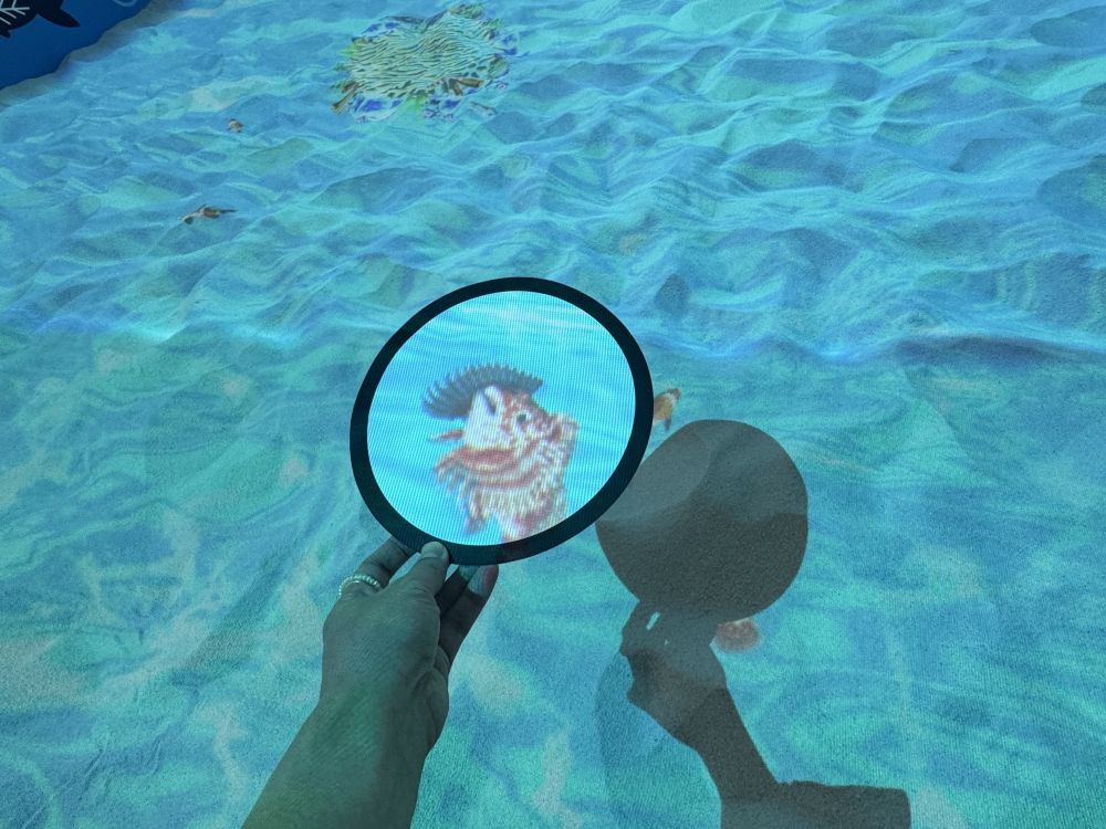 砂の上にはデジタルの海が現れ、海の生き物たちが泳ぎ回ります。