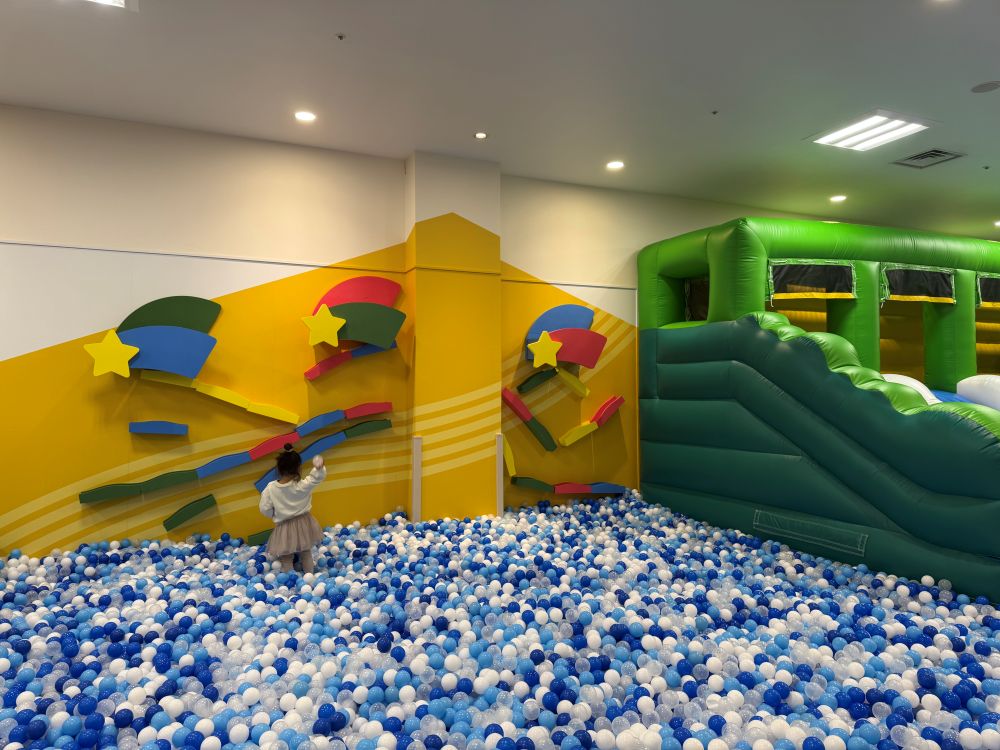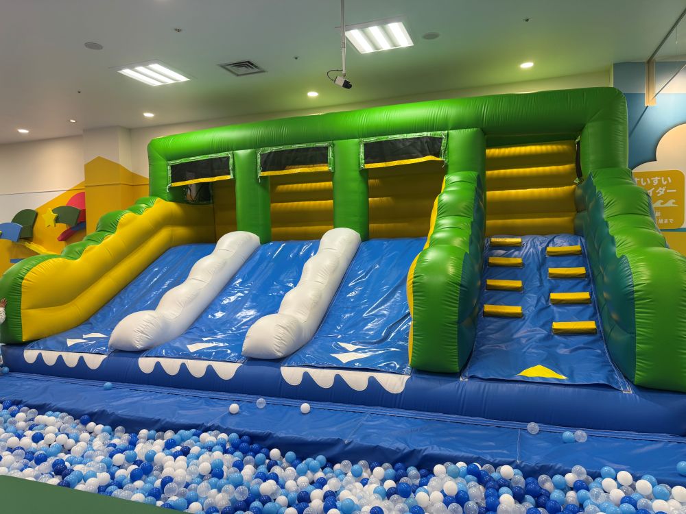 ふわふわのスライダーをすべり降りると、その先にはカラフルなボールがいっぱいのボールプール。