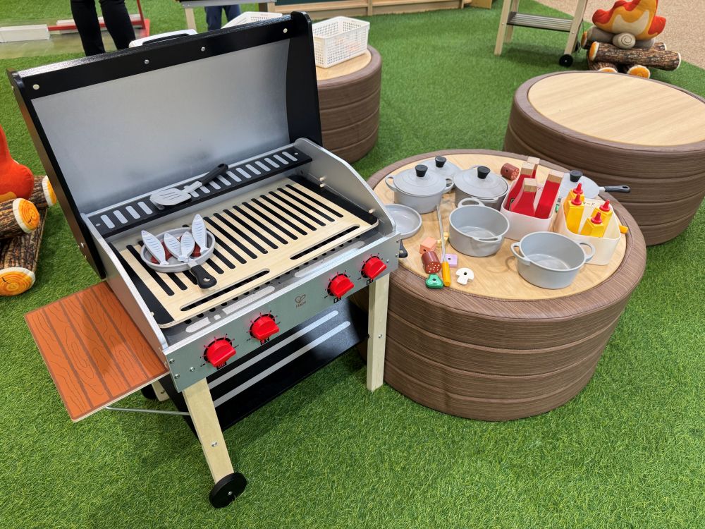 テントやバーベキューグリルが並び、まるでキャンプ場に来たかのような雰囲気の中でごっこ遊びを楽しむことができます。