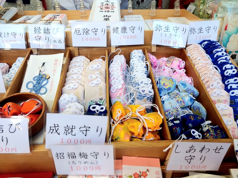 弥生神社のお守りは、カバンなどに入れていつでも持ち歩きたくなるような、ステキなデザインのものが多いので、ぜひじっくりお気に入りを探してみてください。