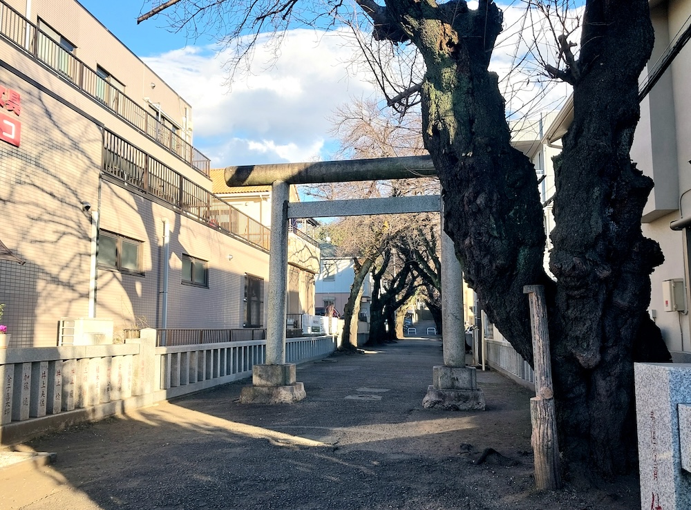 「弥生神社」という看板が見えてきますので、左折して参道へ進みます。
