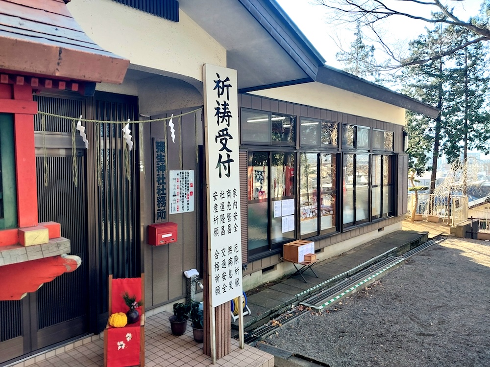 本殿から階段を降りると、左手に社務所が見えてきます。