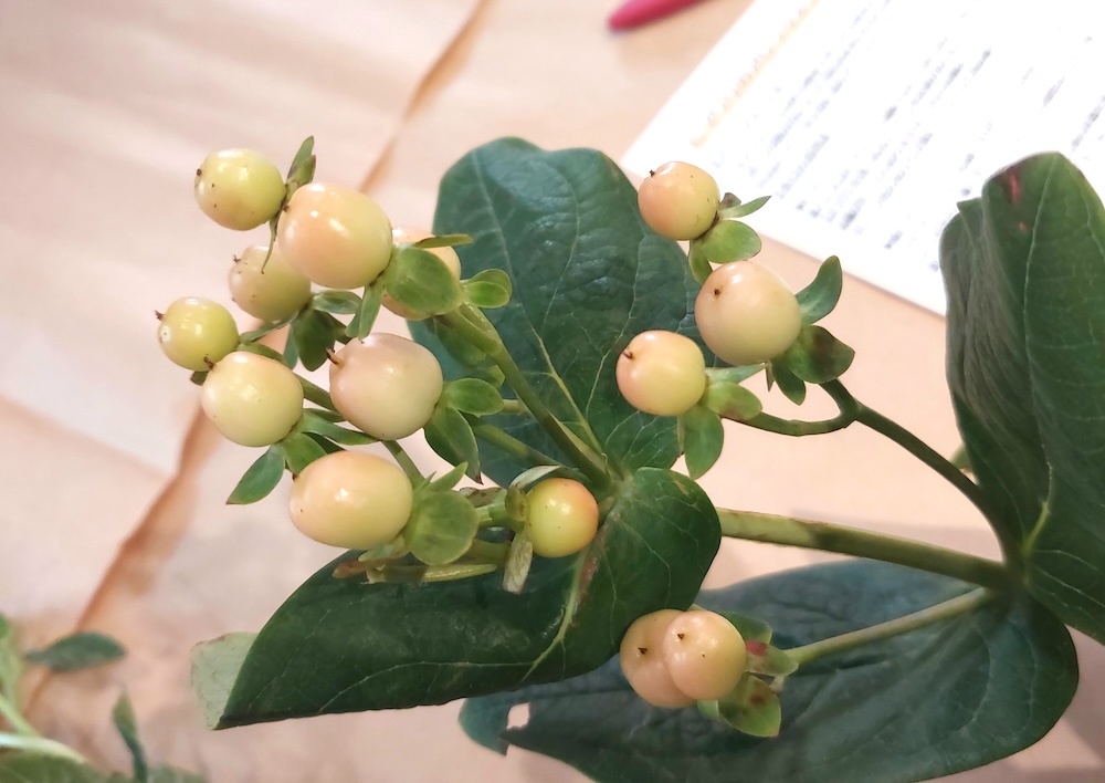 ヒペリカムの実には、スパイスのような独特の香りがあることも教えていただき、ステキな香りも楽しみながら作業を進めることができました。