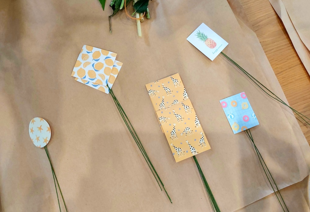 仕上げに、夏らしさいっぱいのポップな飾りも添え、自分だけのオリジナルアレンジメントが完成!