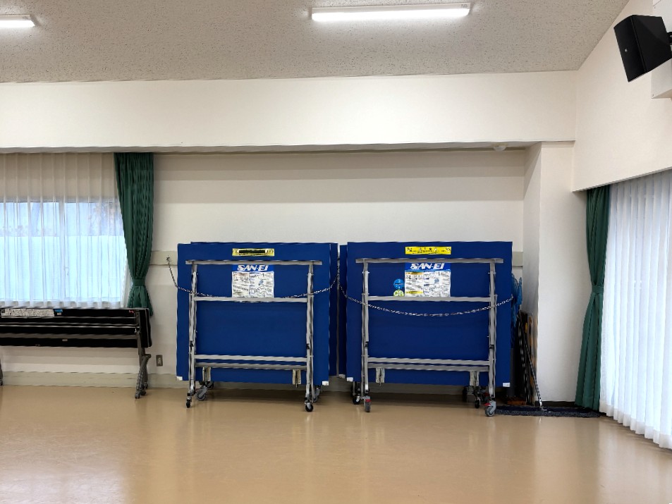 「集会室」という名前ですが、卓球台が備え付けられているので、申請すれば利用できます。