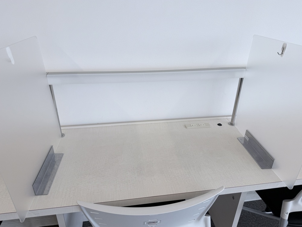 中央にある大きな机には、一つひとつにしっかりと仕切りが設けられており、自分だけのブースのようになります。周りの視線を気にせずに没頭できるため、試験勉強や専門書を広げてじっくりと本を読みたい際にもうってつけの環境です。
