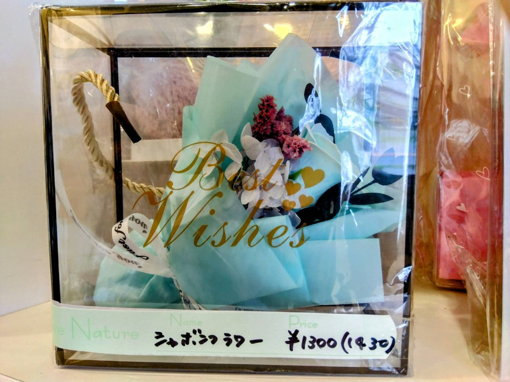 一面花畑のように花に囲まれた店内ですが、揃っているのは生花だけではありません。