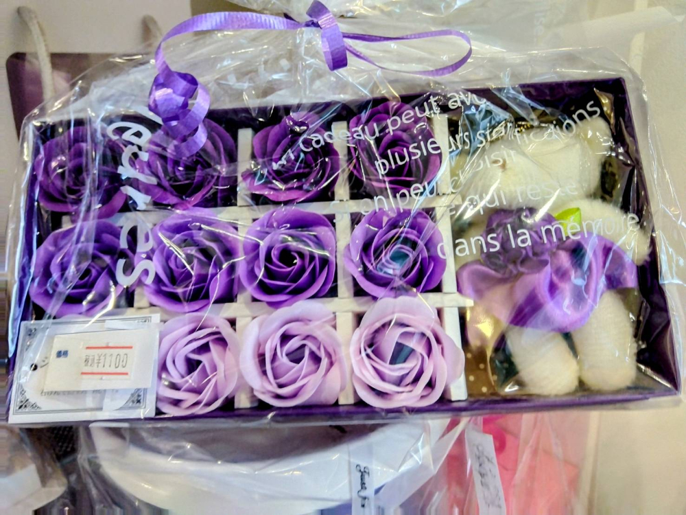 こちらは、なんと石鹸を用いて作られたシャボンフラワーです。花びらや葉が生花と見間違えるくらい繊細に作られています。