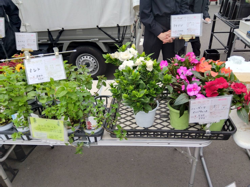 ごむの木は、毎週日曜日に厚木市民文化会館で開催される「厚木市民朝市」に出店しています。食べ物出店が並ぶ中で唯一の植栽販売です。