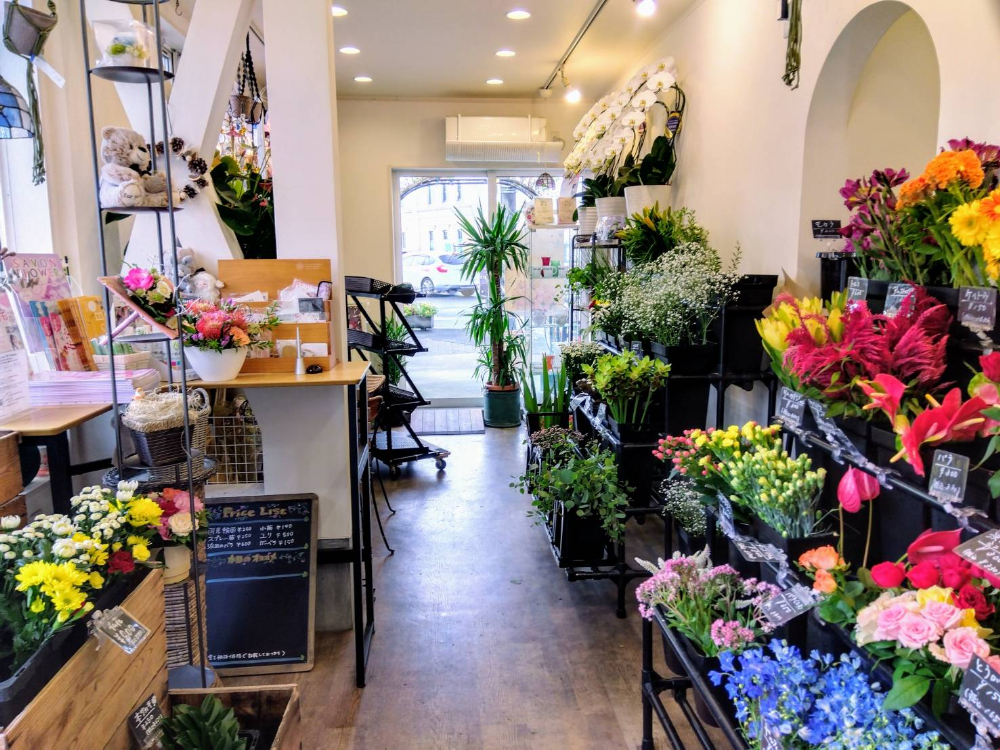 白を基調とした清潔感のある店内。花々の彩りと充満した花の香りに、ついリラックスしてしまいます。