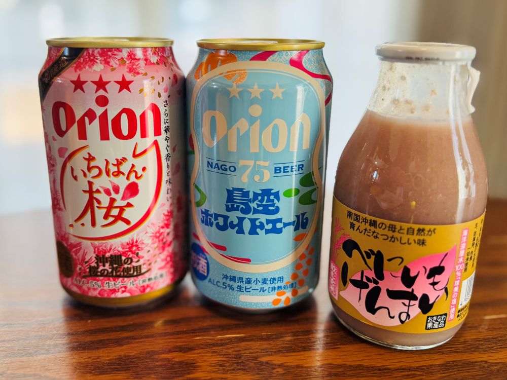 今回購入したのは、春を感じさせるオリオンビールと、沖縄ならではのべにいもげんまい(ノンアルコール)。