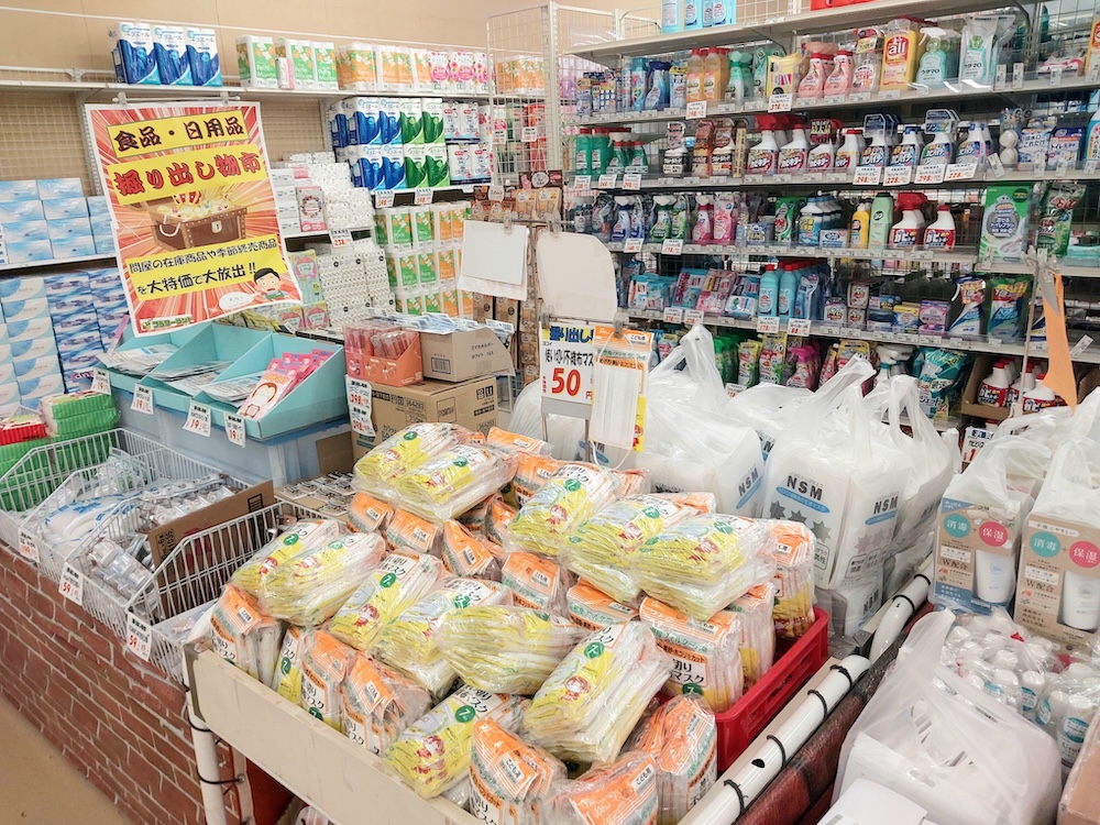 使い捨てマスクや感染対策グッズなども、驚きのお値段で販売していました。