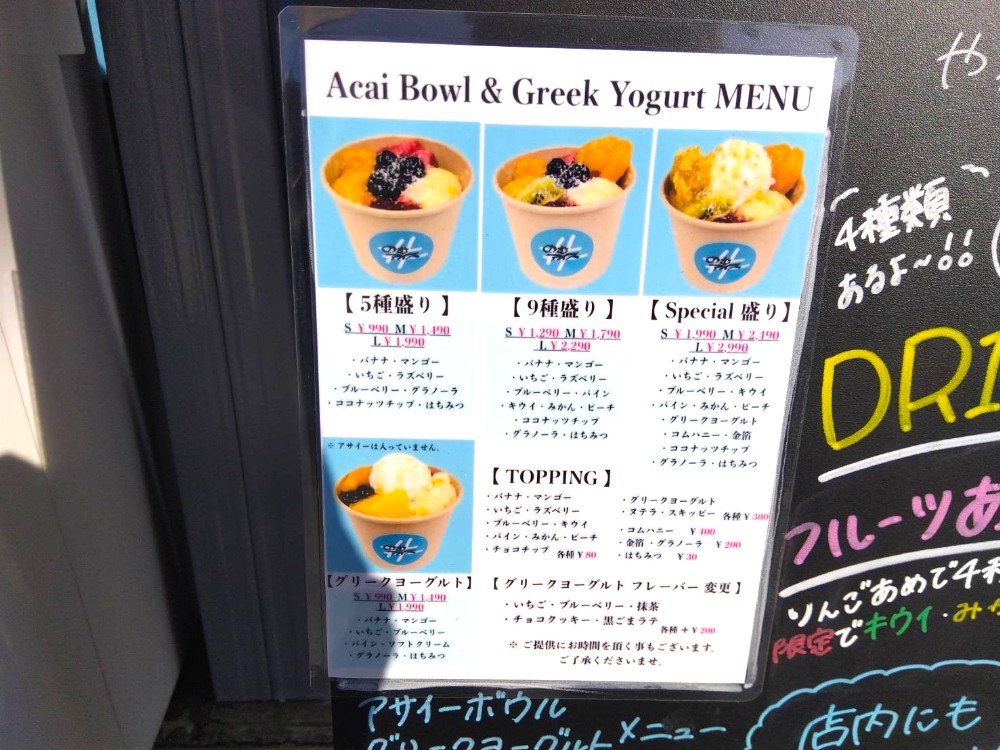 他にもフルーツてんこもりでヘルシーな「アサイーボウル」や「グリークヨーグルト」も販売されています。